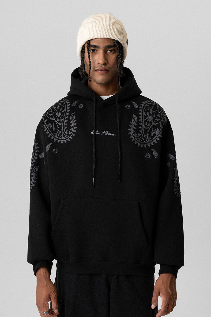 VAMOS PALSLEY PATTERNED OVERSIZE HOODIE BLACK
