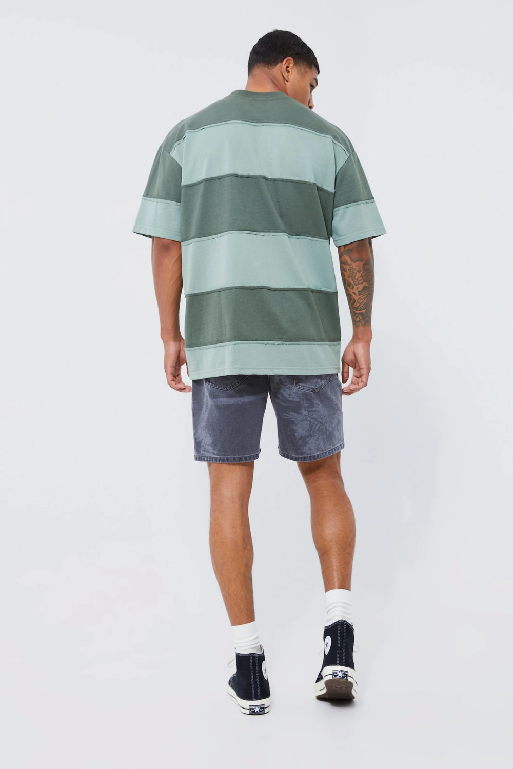 BOOHOOMAN OVERSIZED WOVEN PANEL DETAIL WASHED T-SHIRT