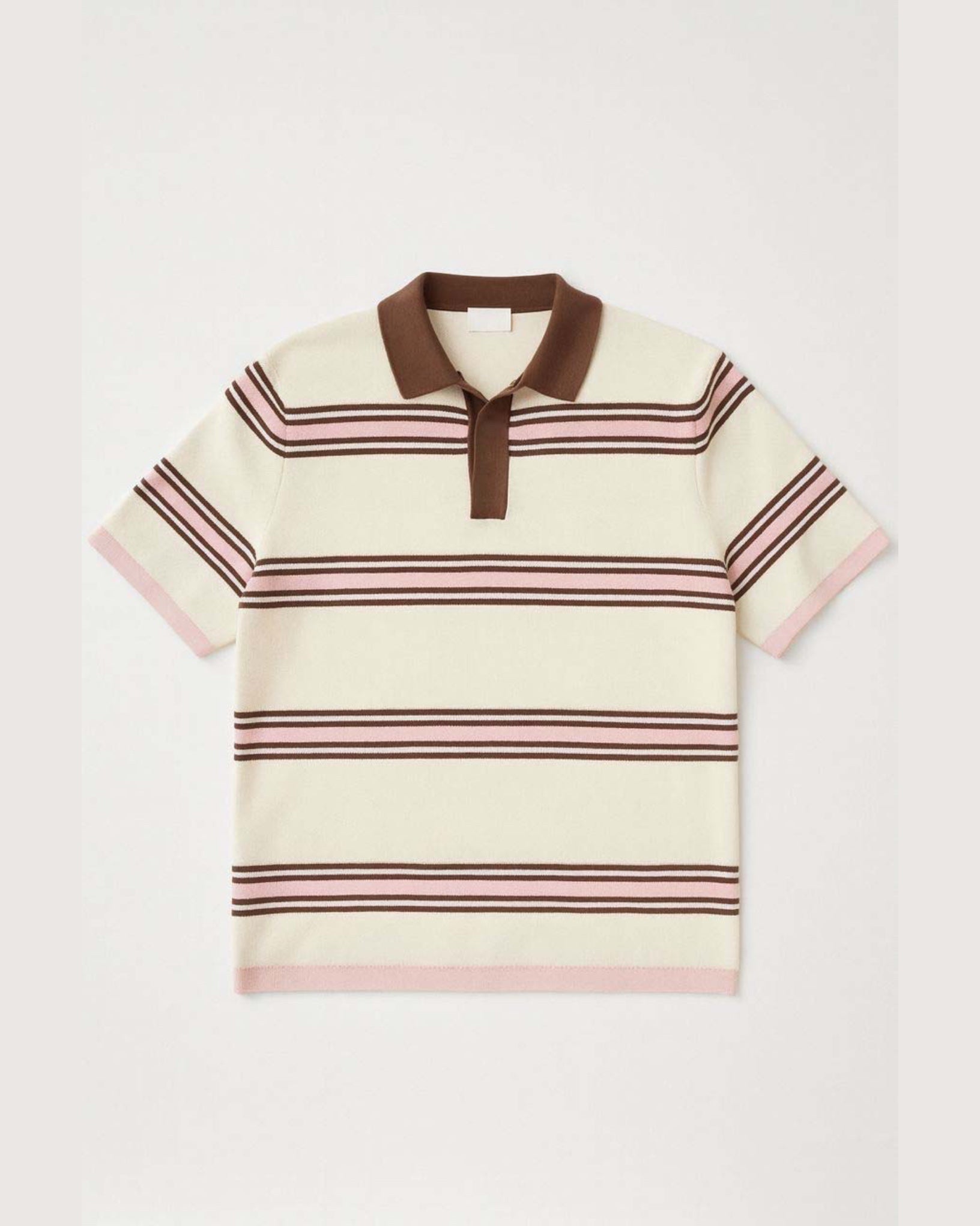 Garm Island Striped Textured Knit Polo Shirt in Pink and Brown