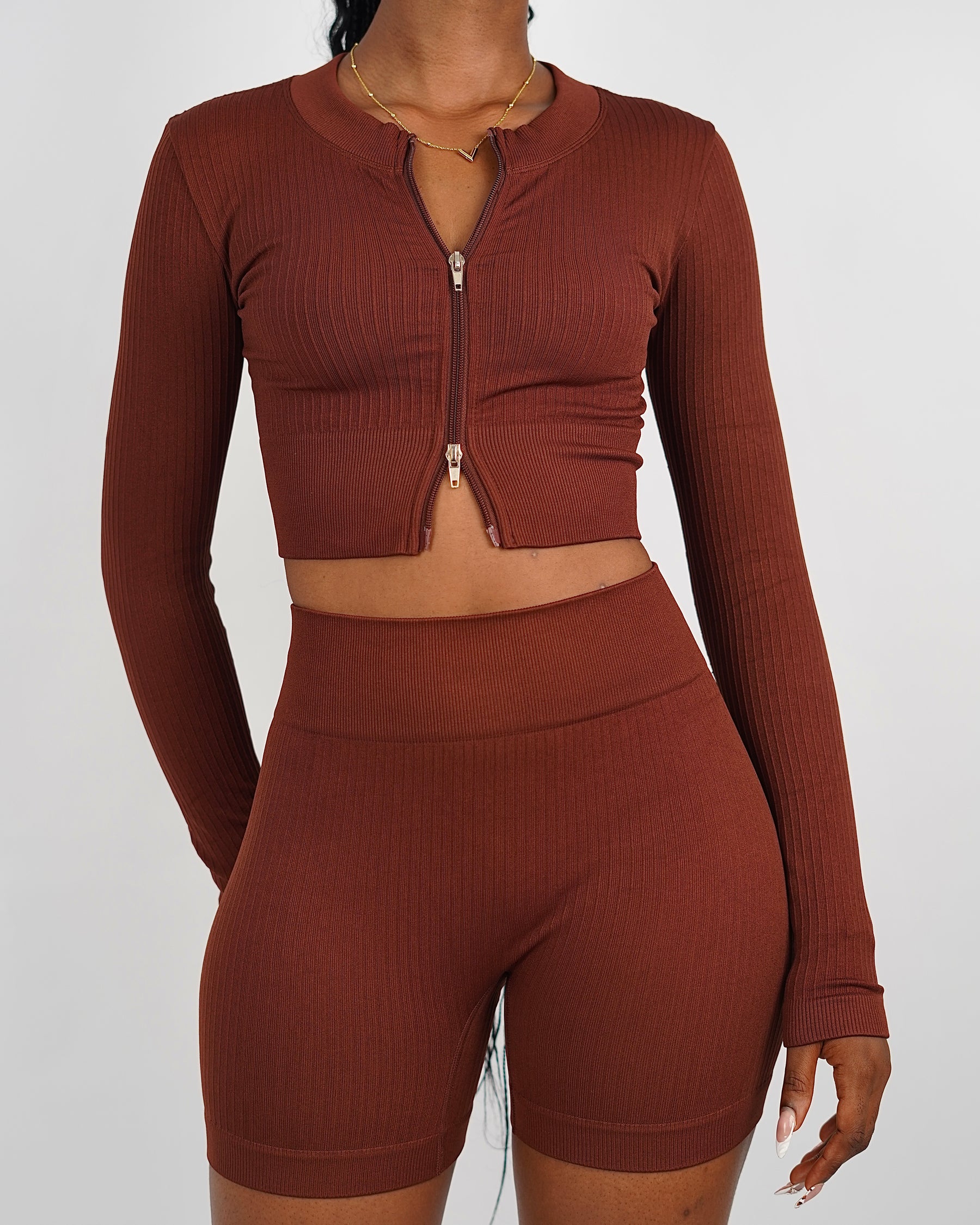 Garm Island Seamless Ribbed Long Sleeve in Brown