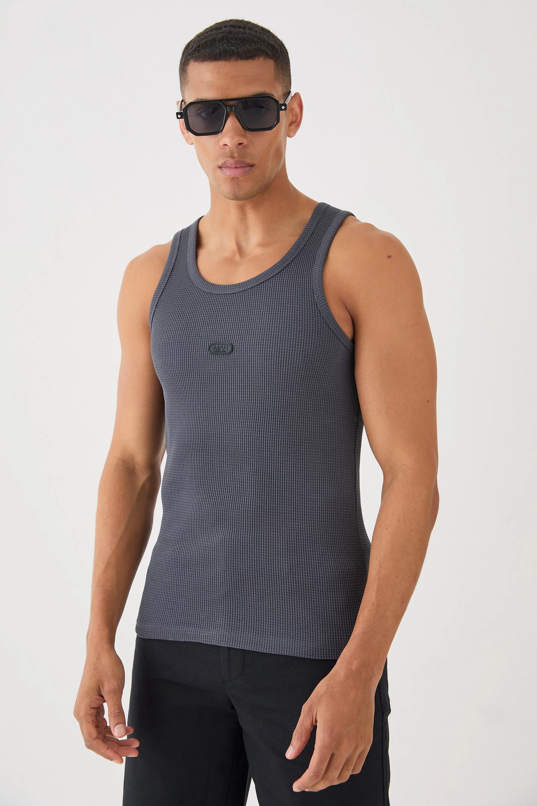 MAN SLIM WAFFLE RUBBER BADGE VEST CHARCOAL