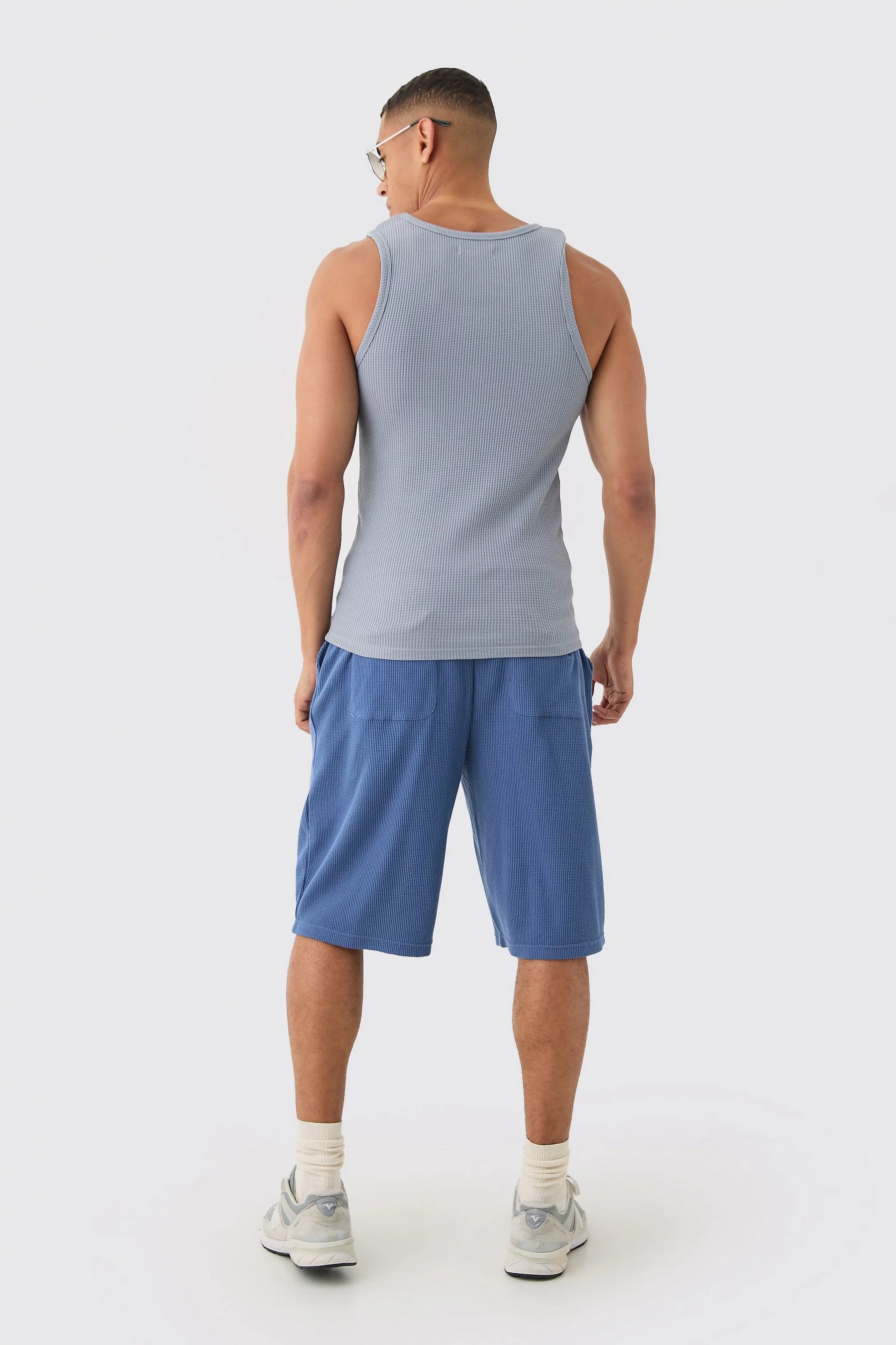 MAN SLIM WAFFLE RUBBER BADGE VEST SLATE BLUE