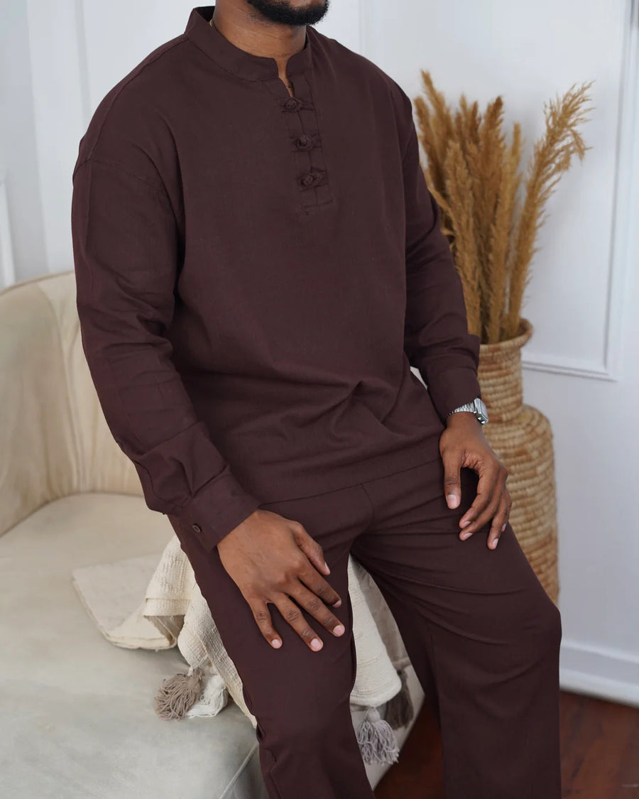 Garm Island Detail Linen Set in Chocolate