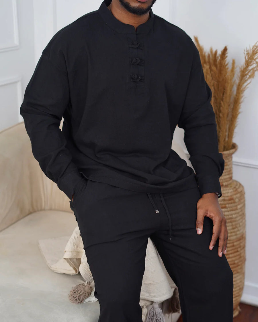 Garm Island Detail Linen Set in Black